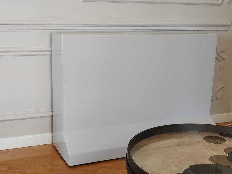 Acabamos de instalar en este domicilio del centro de Madrid dos muebles lacados blancos mate, de 140cm de largo, uno para la sala de estar y otro para un dormitorio.