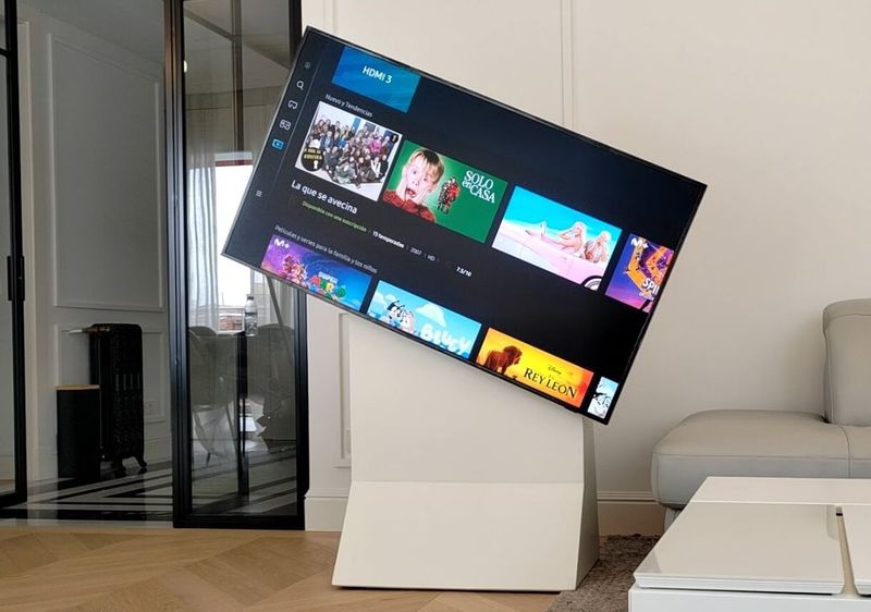 Composición que permite bascular la tv para dirigirla hacia cualquier lugar de la sala con mando a distancia.