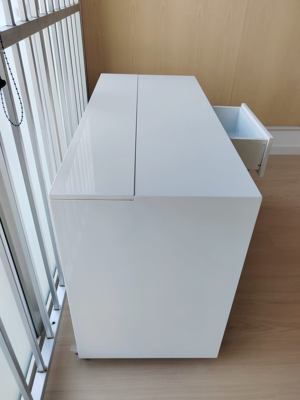 Sistema de elevación y ocultación motorizado NUEVO, con mando a distancia. La tapa superior queda detrás de la tv cuando la misma está desplegada. Cierre automático y silencioso.